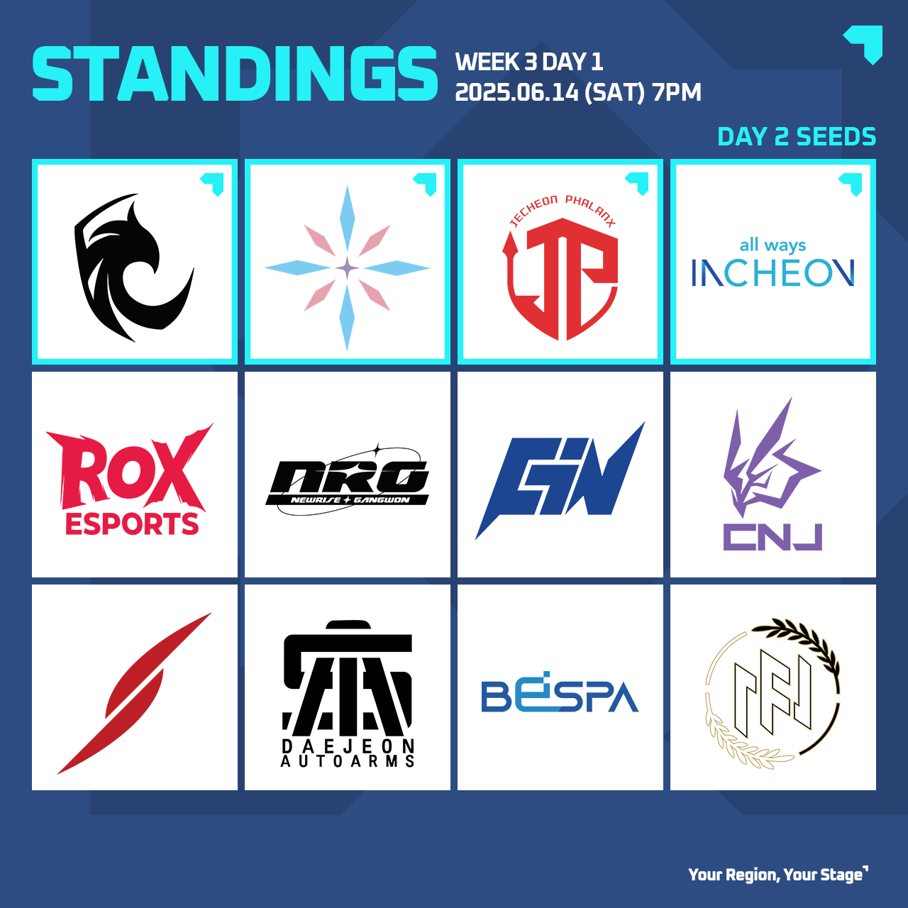 『2025 KEL』では8週間集めた賞金を基に順位が決まります。正規シーズンの順位に応じて各週の賞金を獲得し、プレーオフの1日目または2日目の試合に出場することになります。