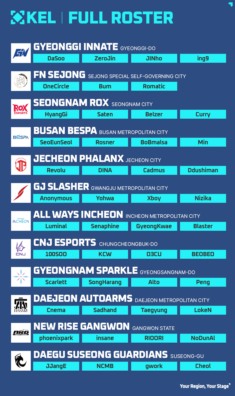 『KEL』は韓国文化体育観光部が主催し、韓国eスポーツ協会とNimble Neuronが主管し、韓国コンテンツ振興院とKkubeurakko炭火焼きチキンが後援している韓国初の地域eスポーツリーグです。