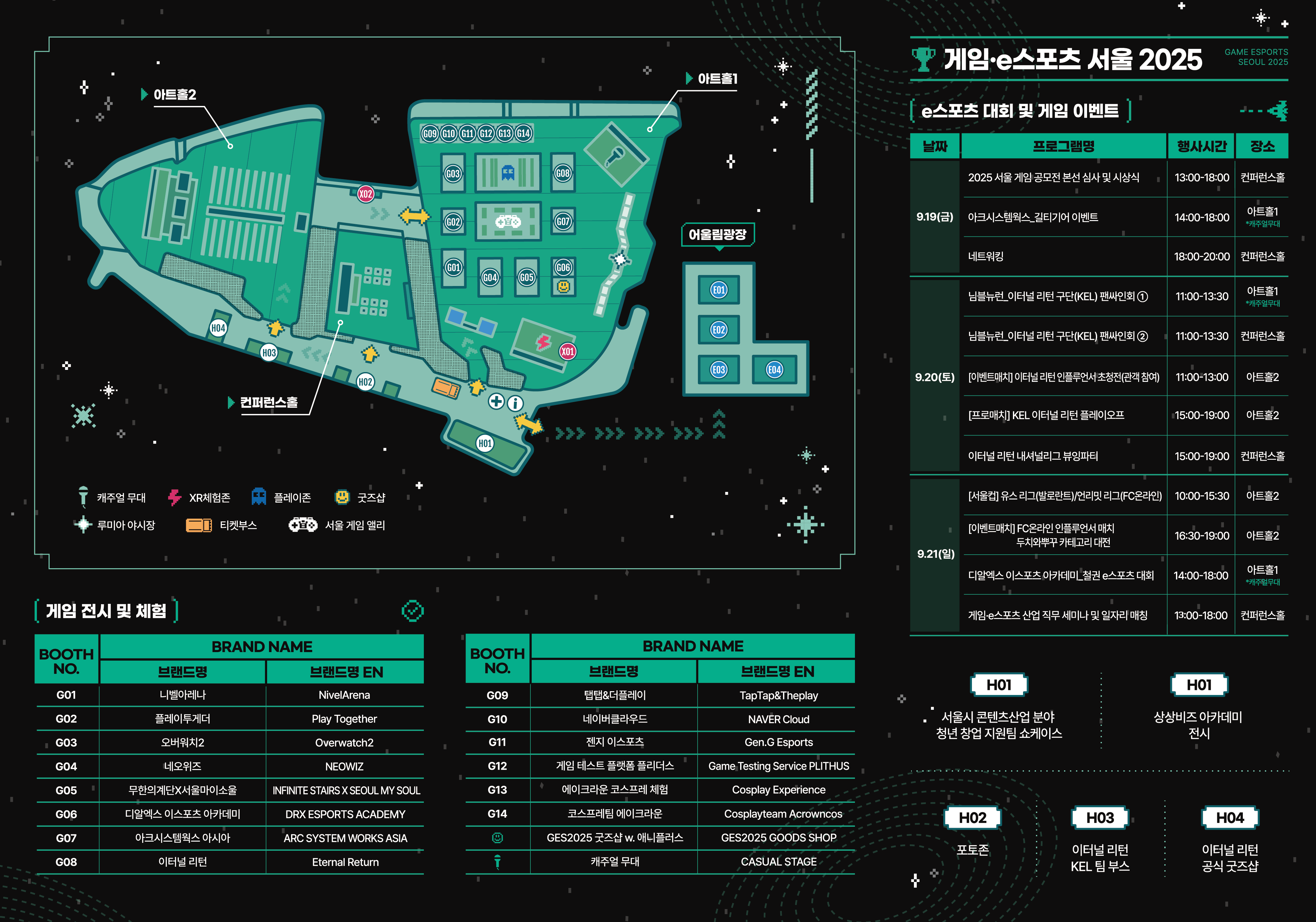 ■ 게임 이스포츠 서울 2025 및 부대 행사 입장 안내 (루미아 야시장, KEL 팀 부스, 이터널 리턴 전시 부스 등)