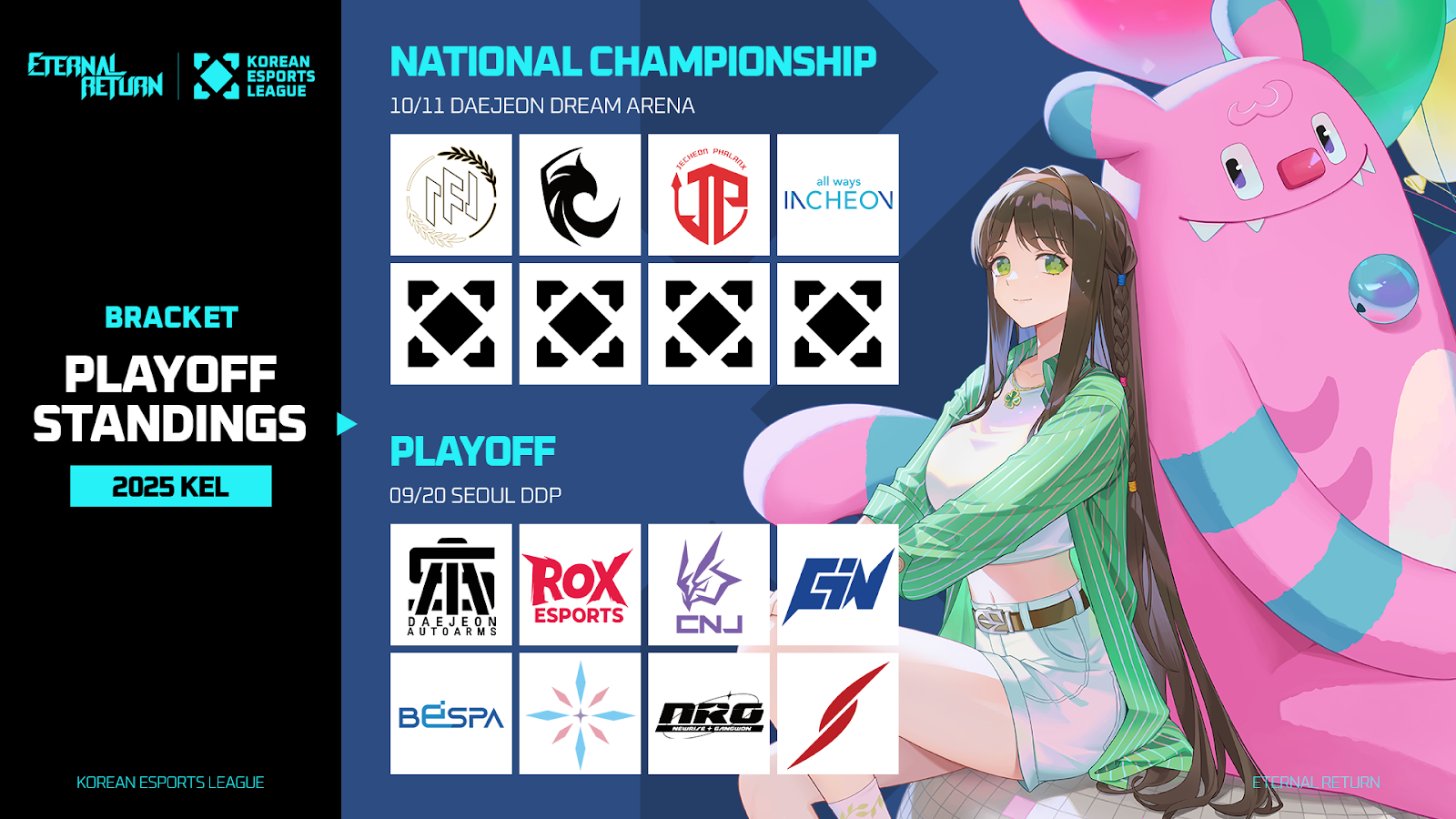 KEL 플레이오프는 이번 KEL의 최종 우승팀을 가려내기 위한 여정의 첫 번째 단계입니다. 정규 시즌 누적 상금 순위 5위부터 12위까지 총 8개 팀이 참여하는 경기인 KEL 플레이오프 경기에서는 10월 11일 대전에서 펼쳐지는 KEL 내셔널 챔피언십에 도달하기 위한 치열한 경기가 펼쳐질 예정입니다.
