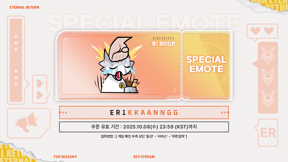 안녕하세요, 루미아 섬의 생존자 여러분.개발팀과의 만남에서 공개된 깡! 이모티콘 쿠폰 안내 드립니다.