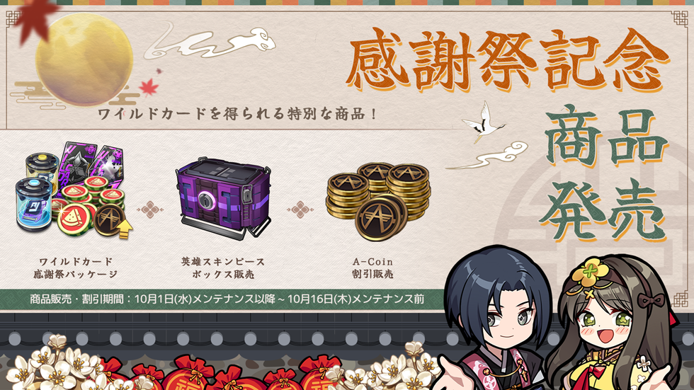 - 運営期間:10月1日(水)メンテナンス以降 ~ 10月30日(木)メンテナンス前