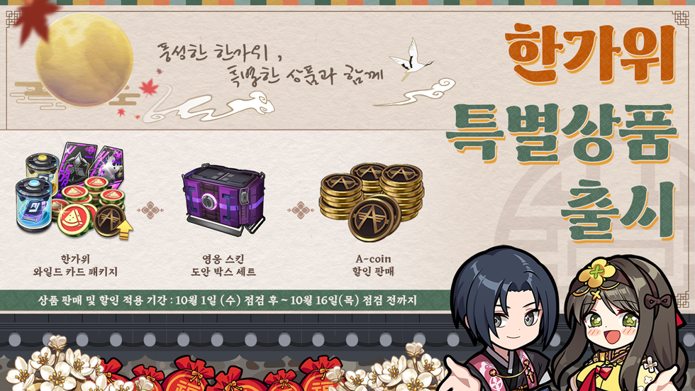 - 이벤트 기간 : 10/1(수) 점검 후 ~ 10/16(목) 점검 전
