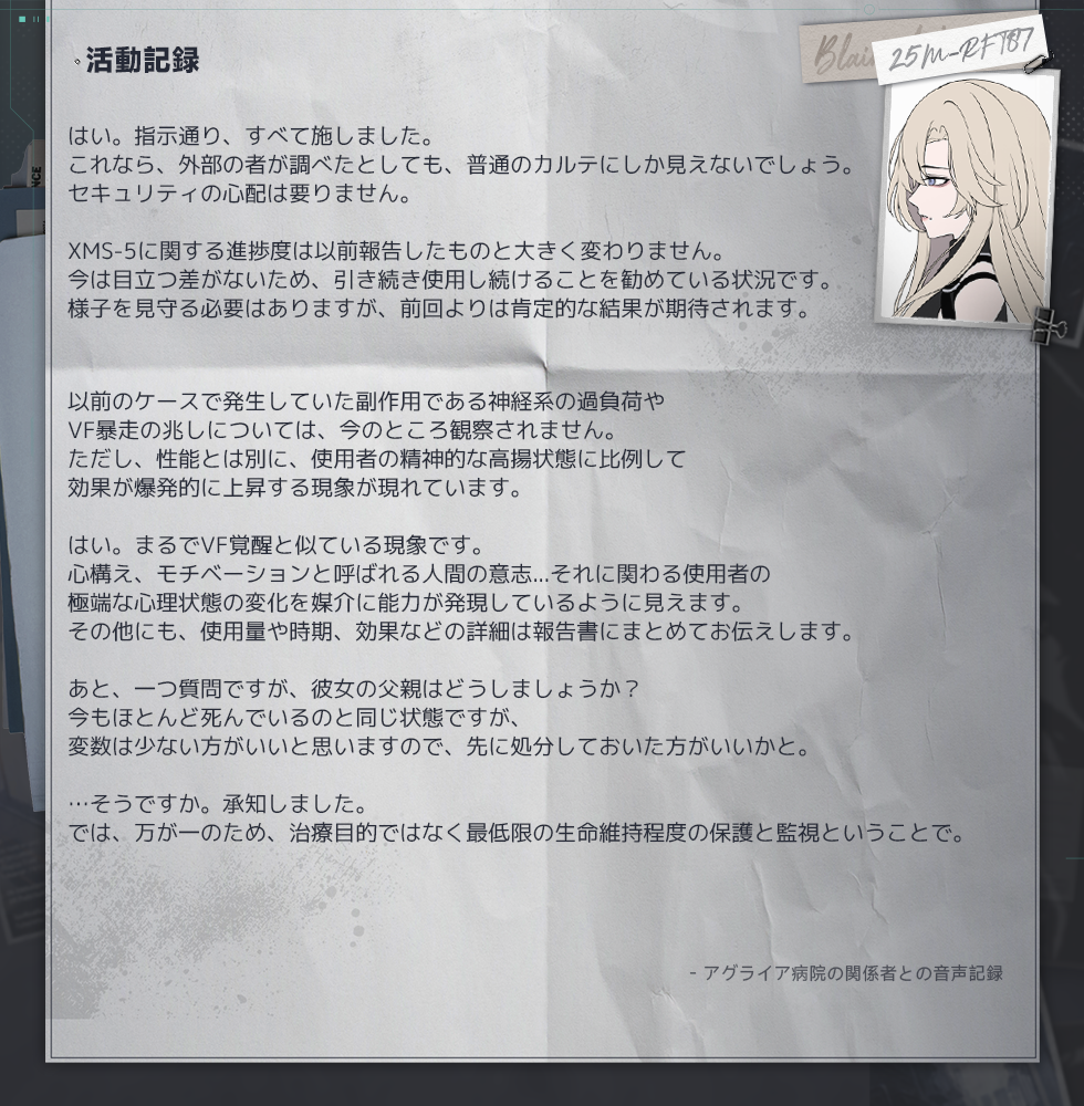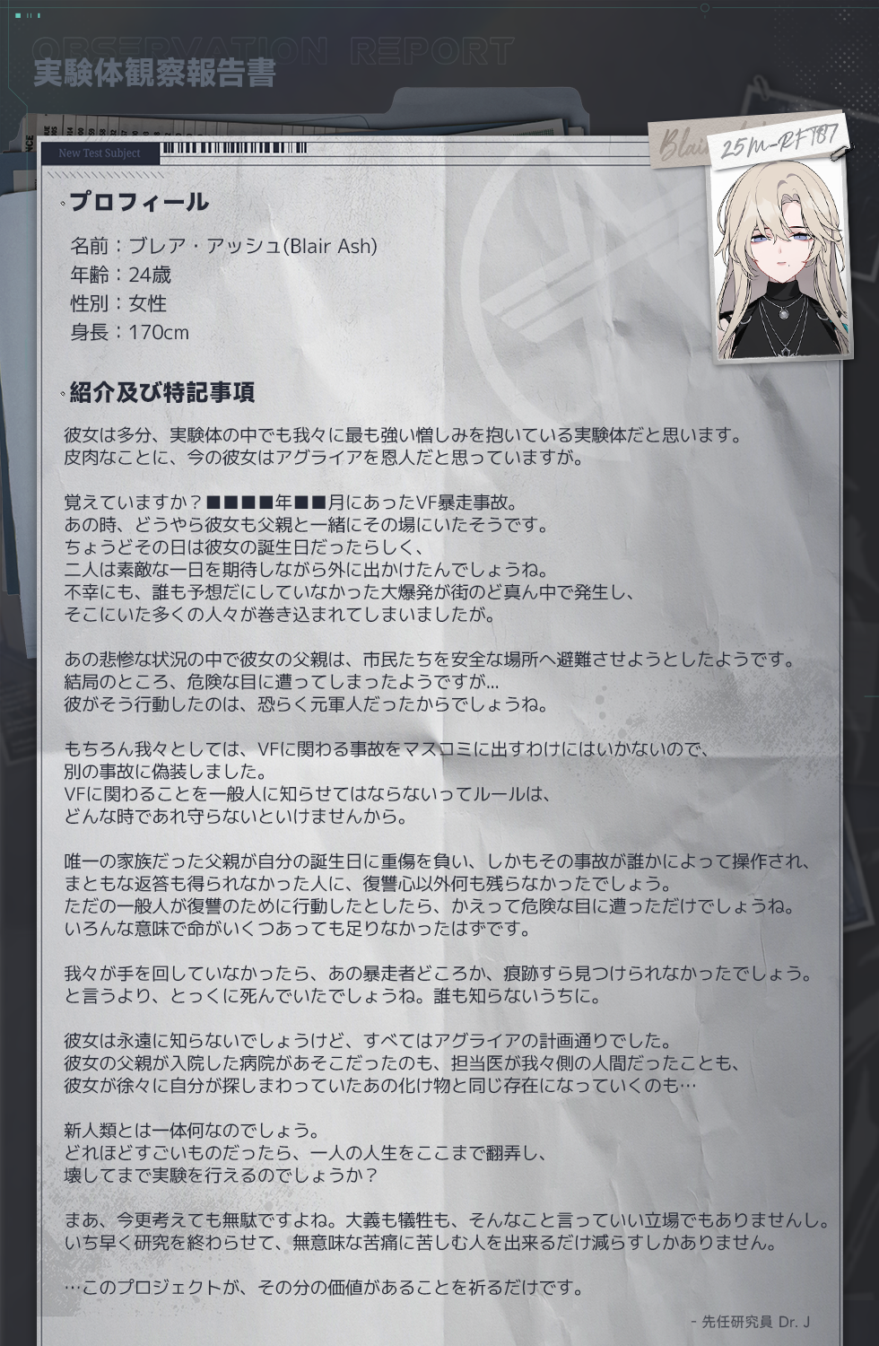 彼女は多分、実験体の中でも我々に最も強い憎しみを抱いている実験体だと思います。