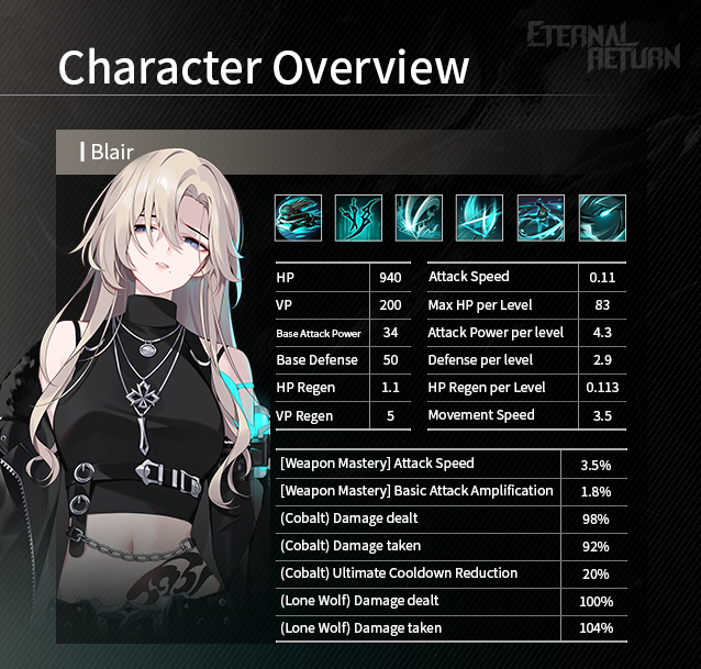 Blair will be available for 9,900 A-Coin for two weeks after launch and will not be available in Ranked matches until November 4th.