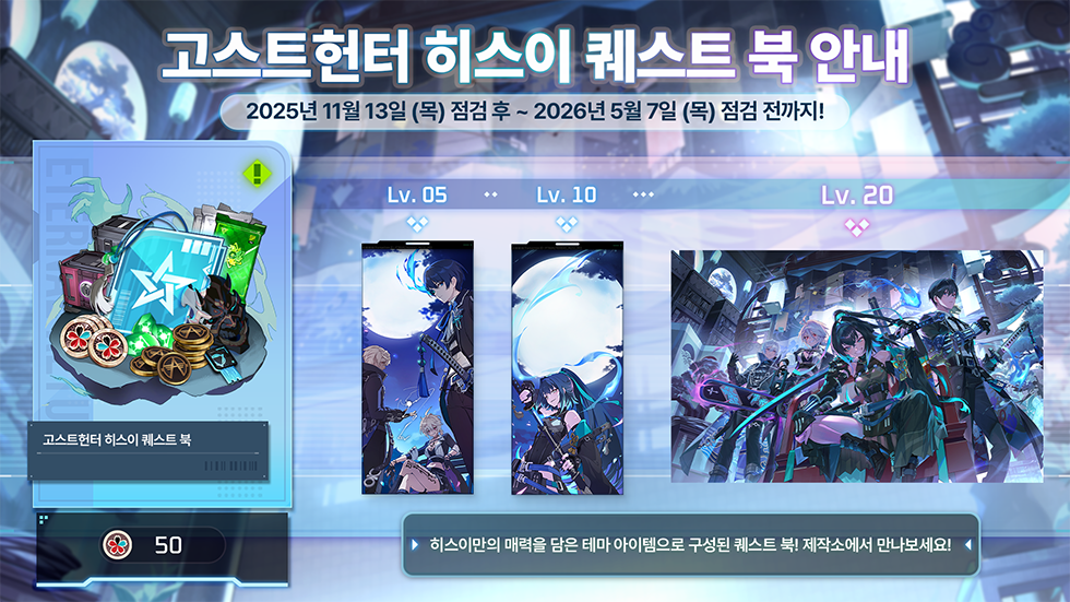 ※ 고스트헌터 히스이 퀘스트 북은 레벨 달성 시마다 아이템을 획득할 수 있습니다. (1~20레벨)
