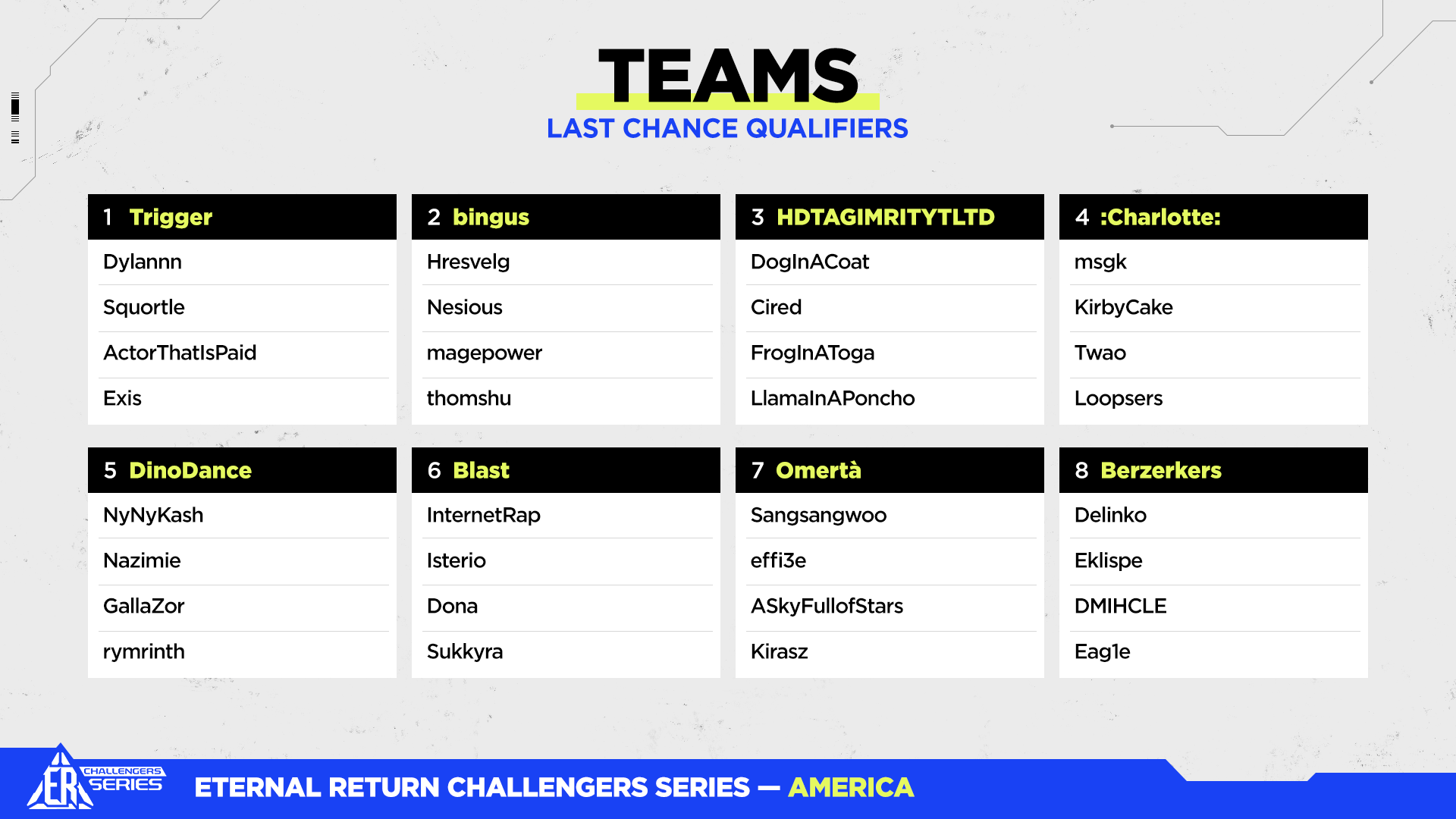 - ER: Challengers Series Season 9 Phase 2 Last Chance Qualifier