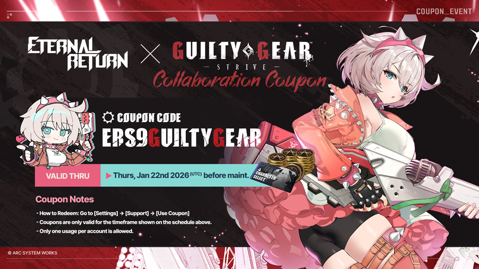 Event 1: Eternal Return X GUILTY GEAR -STRIVE- Special Collab Coupon