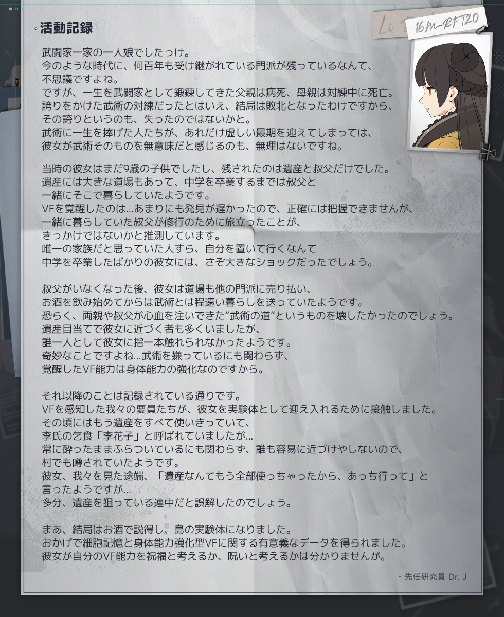 VFを感知した我々の要員たちが、彼女を実験体として迎え入れるために接触しました。