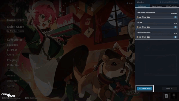 • Shared missions that can be completed regardless of mode (such as Log In to Eternal Return) are not affected.