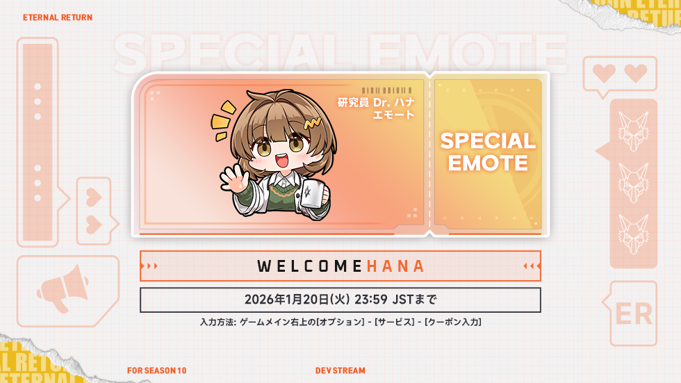 こんにちは、ルミア島の生存者の皆さん!開発者ライブ配信で公開された開発者のクーポンをご案内いたします。