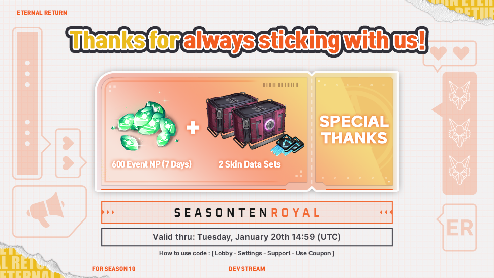 Here's the coupon we revealed during the Dev Stream!
