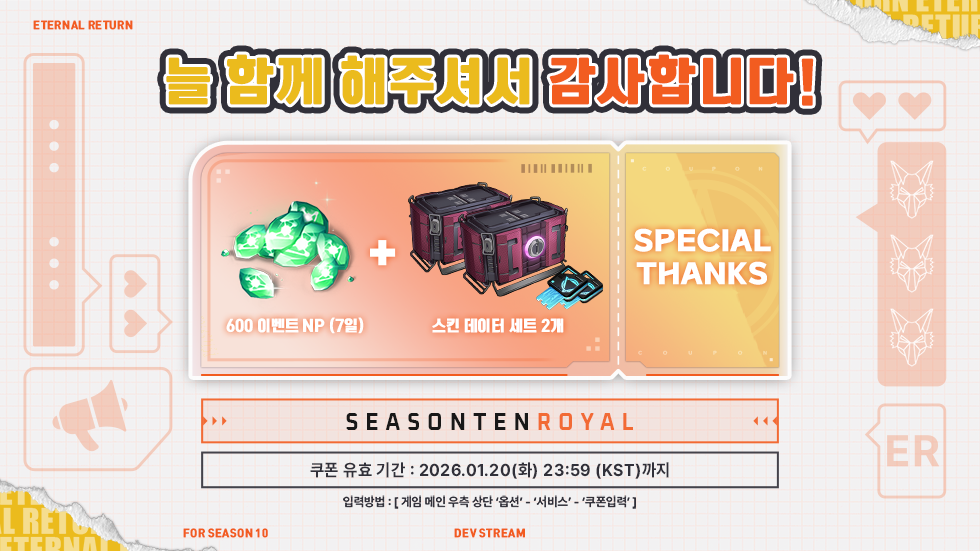 개발팀과의 만남에서 공개된 쿠폰 안내 드립니다.