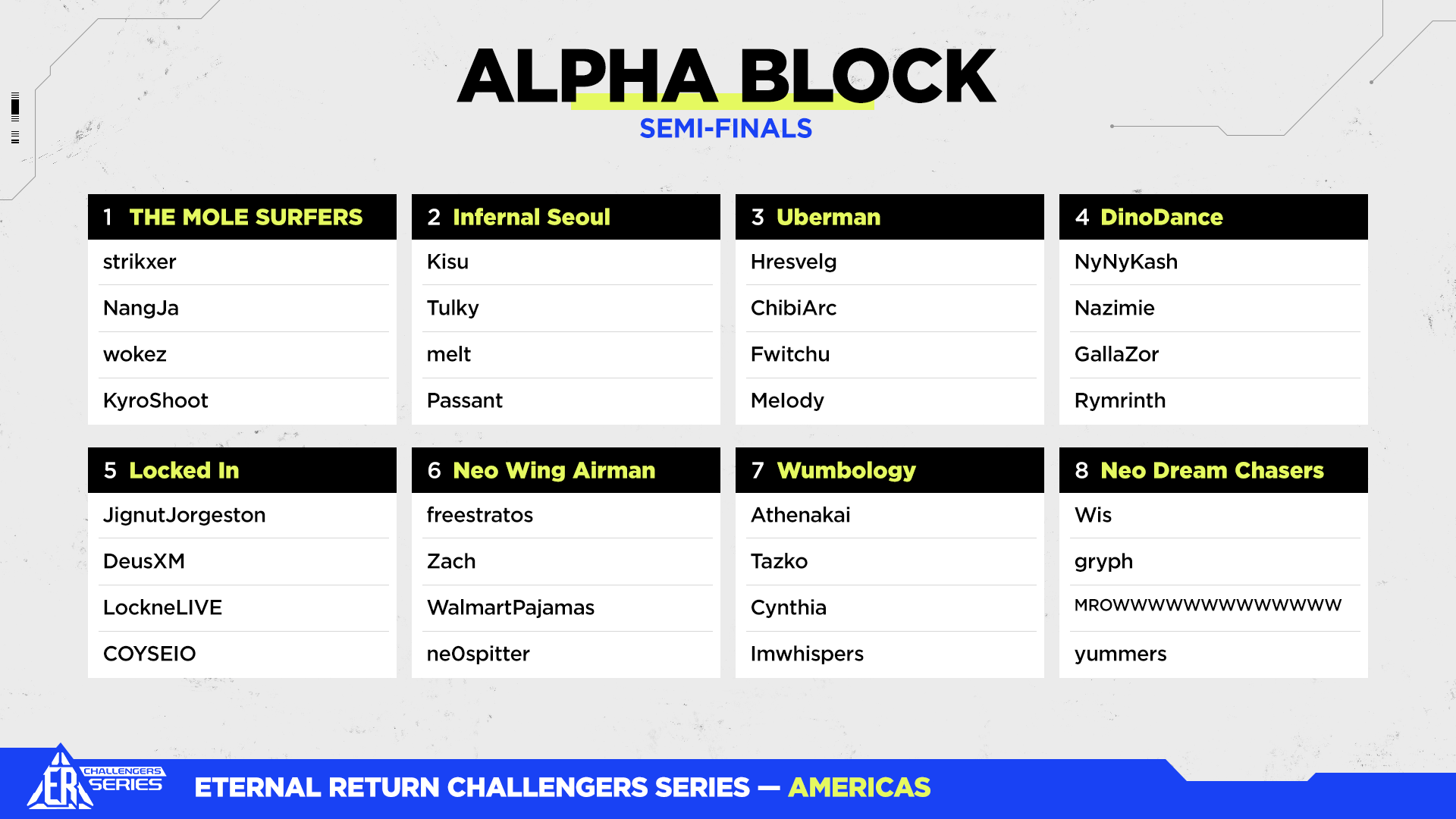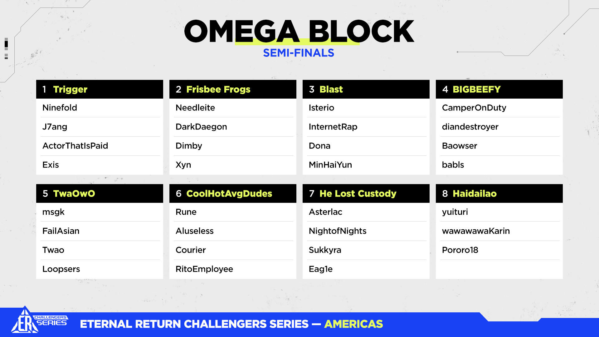 - ER: Challengers Series Season 10 Semi-Finals