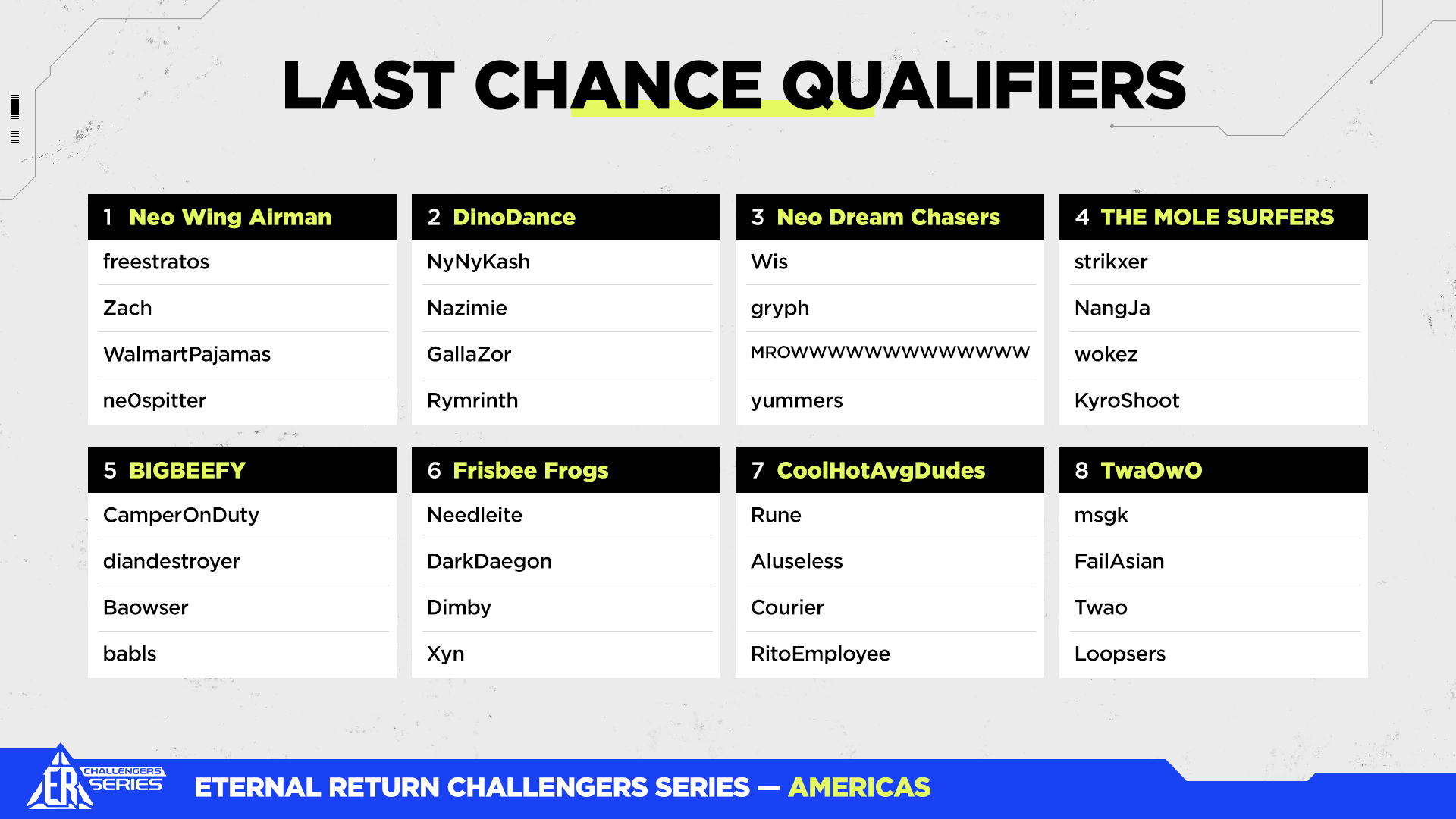- ER: Challengers Series Season 10 Phase 1 Last Chance Qualifiers