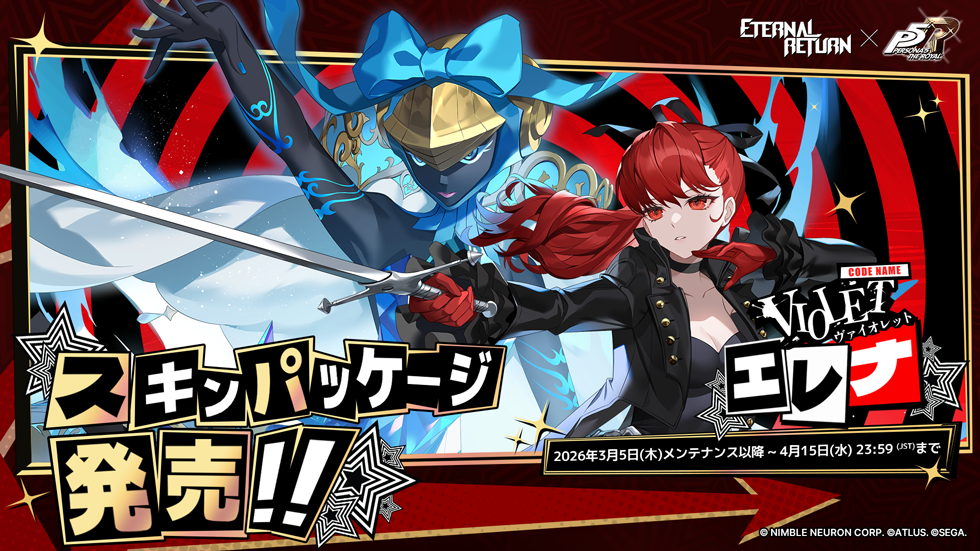 『Eternal Return』 X 『ペルソナ5 ザ・ロイヤル』コラボのエレナ(ヴァイオレット)スキンパッケージが販売されます!