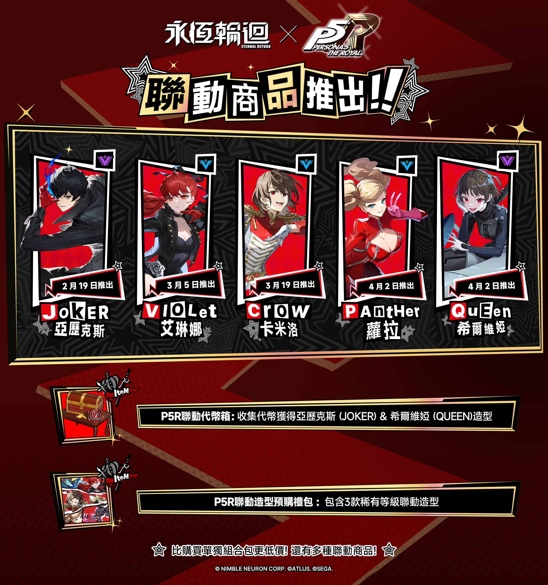 為大家帶來《永恆輪迴》x《女神異聞錄5 皇家版》艾琳娜 (VIOLET) 造型組合包商品通知。