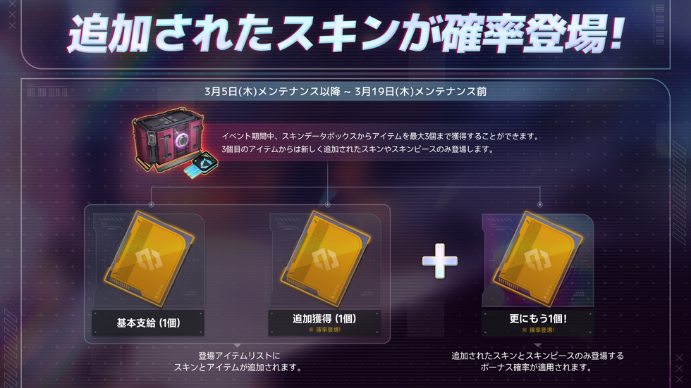 新しくスキンが追加され、約2週間「スキンデータボックスウィーク」イベントが行われます。