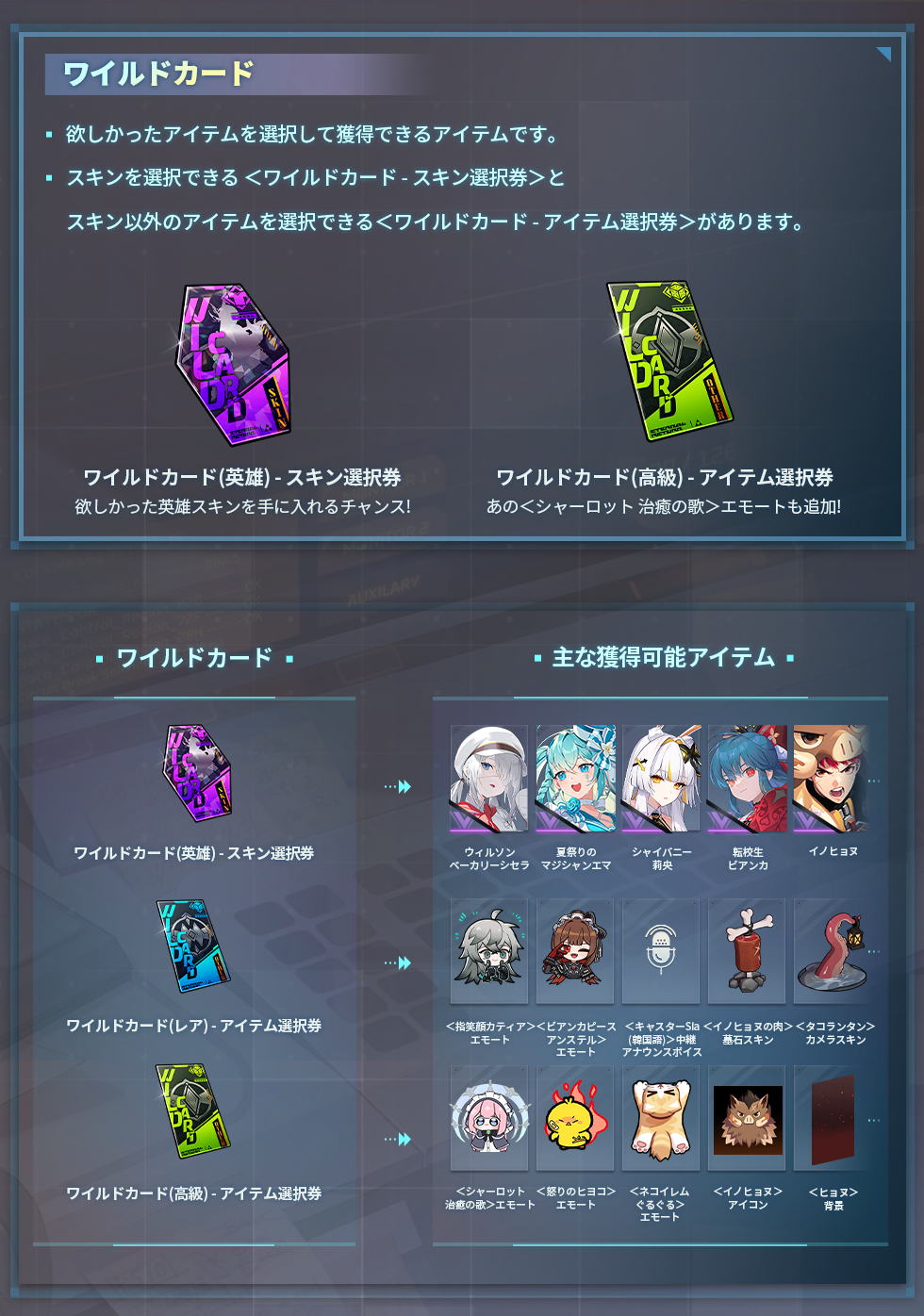 | ワイルドカード(レア) - スキン選択券 | 1 |