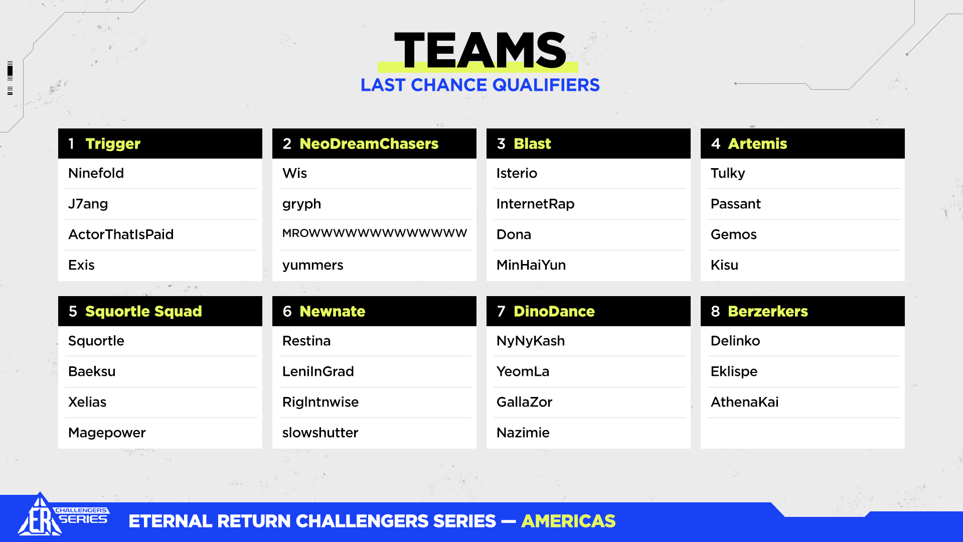 - ER: Challengers Series Season 10 Phase 2 Last Chance Qualifiers