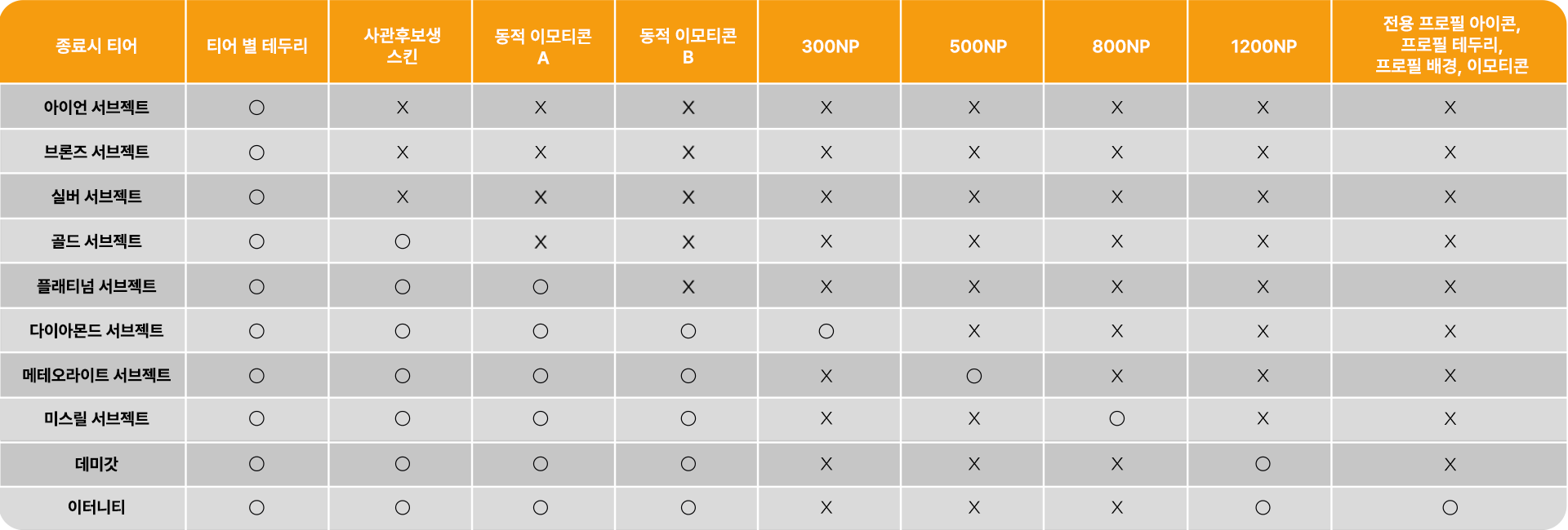 ※ 티어 산정 및 귀속 서버 기준 조건은 시즌 및 서버 상황에 따라 변동될 수 있습니다.