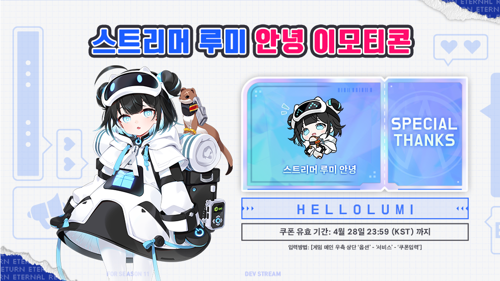 개발팀과의 만남에서 공개된 스트리머 루미 안녕 이모티콘 쿠폰 안내 드립니다.